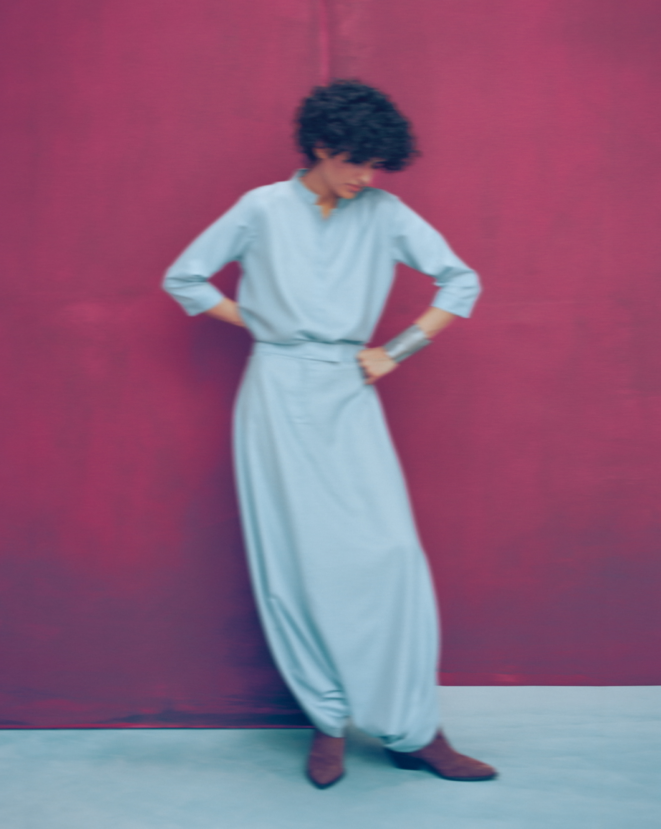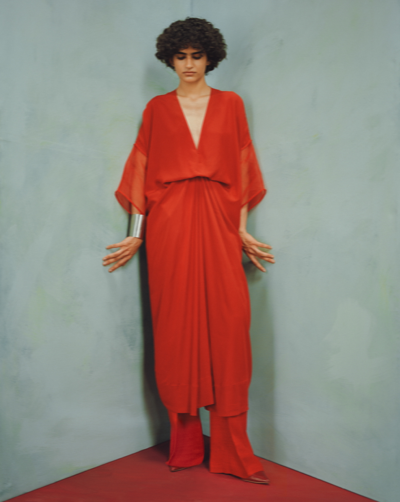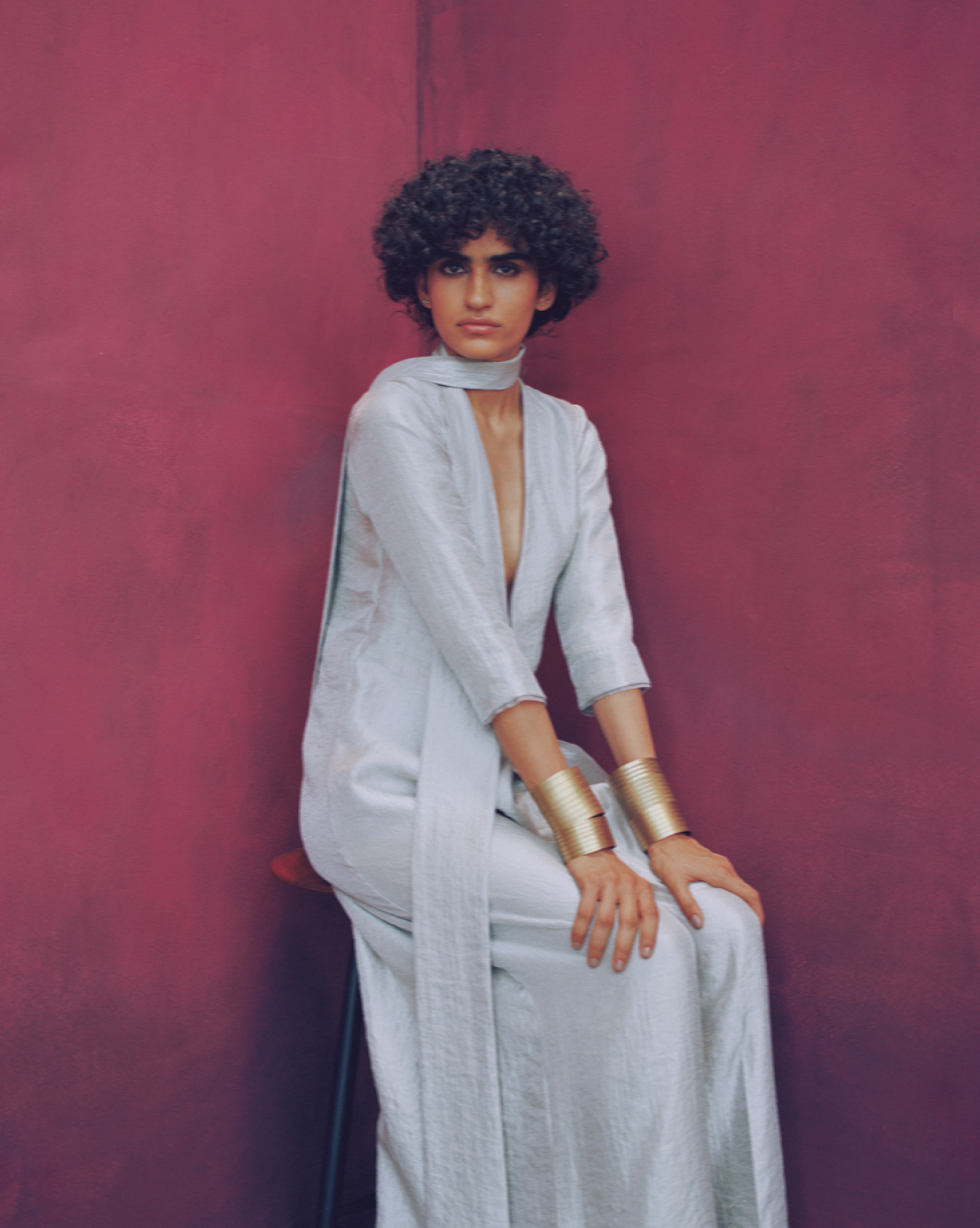 For this collection, Payal’s intention was to simplify the process of dressing. For example, some of the silhouettes are engineered to appear as layered separates, but the construction is a single, continuous garment. Each look is designed as she would style it, with proportion, balance and movement built in.